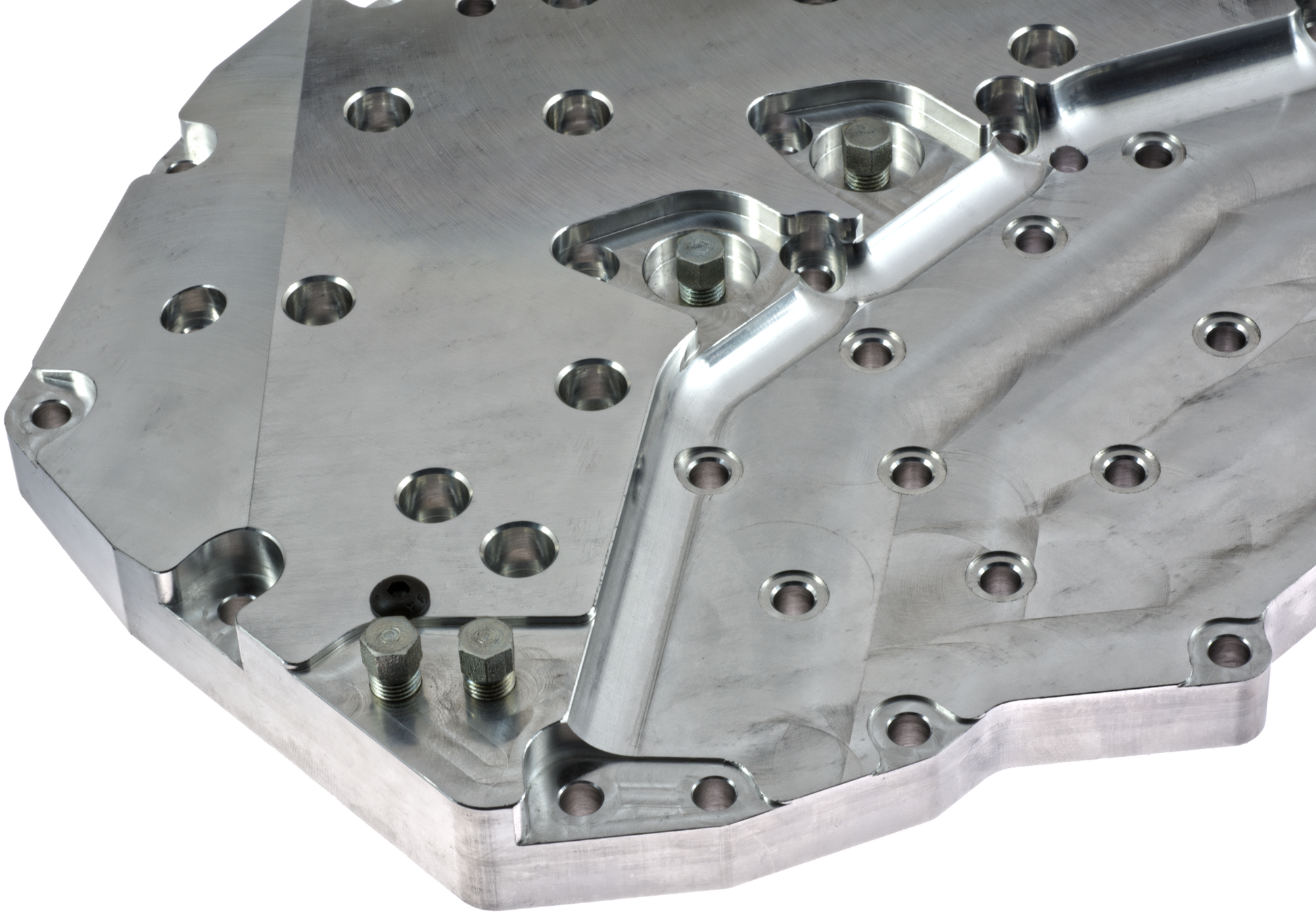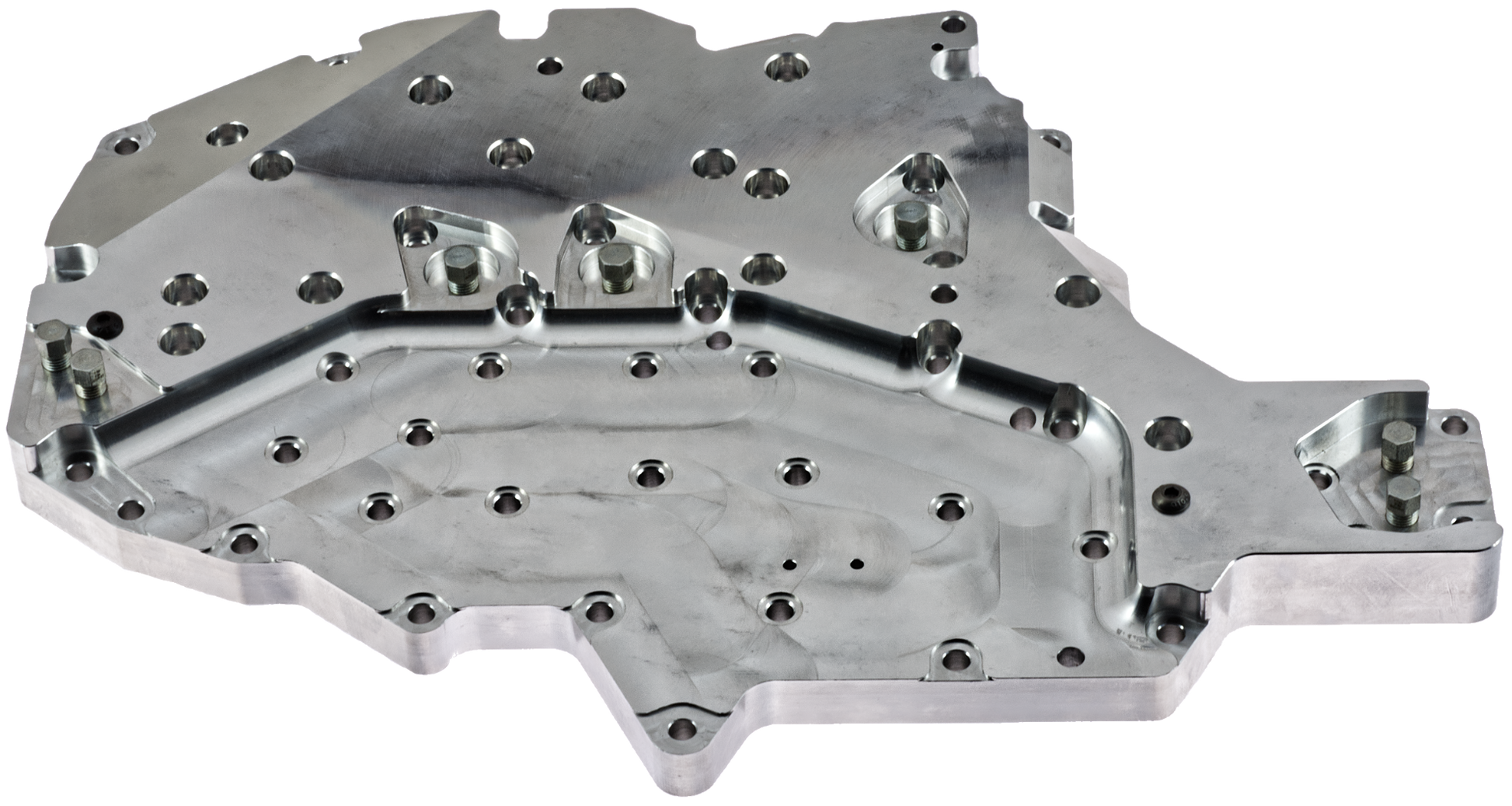 We developed a new plate made of billet aluminum that has shallow hydraulic circuits. It is made from a solid 1” piece of material. Machining away only what is necessary to ensure no warpage and a very solid foundation to bolt the valve body back to. Also, we have slightly moved some passages and eliminated those not necessary in hopes of stopping separator plate chafing and valve body breakage and cracking from high line pressure in performance applications.