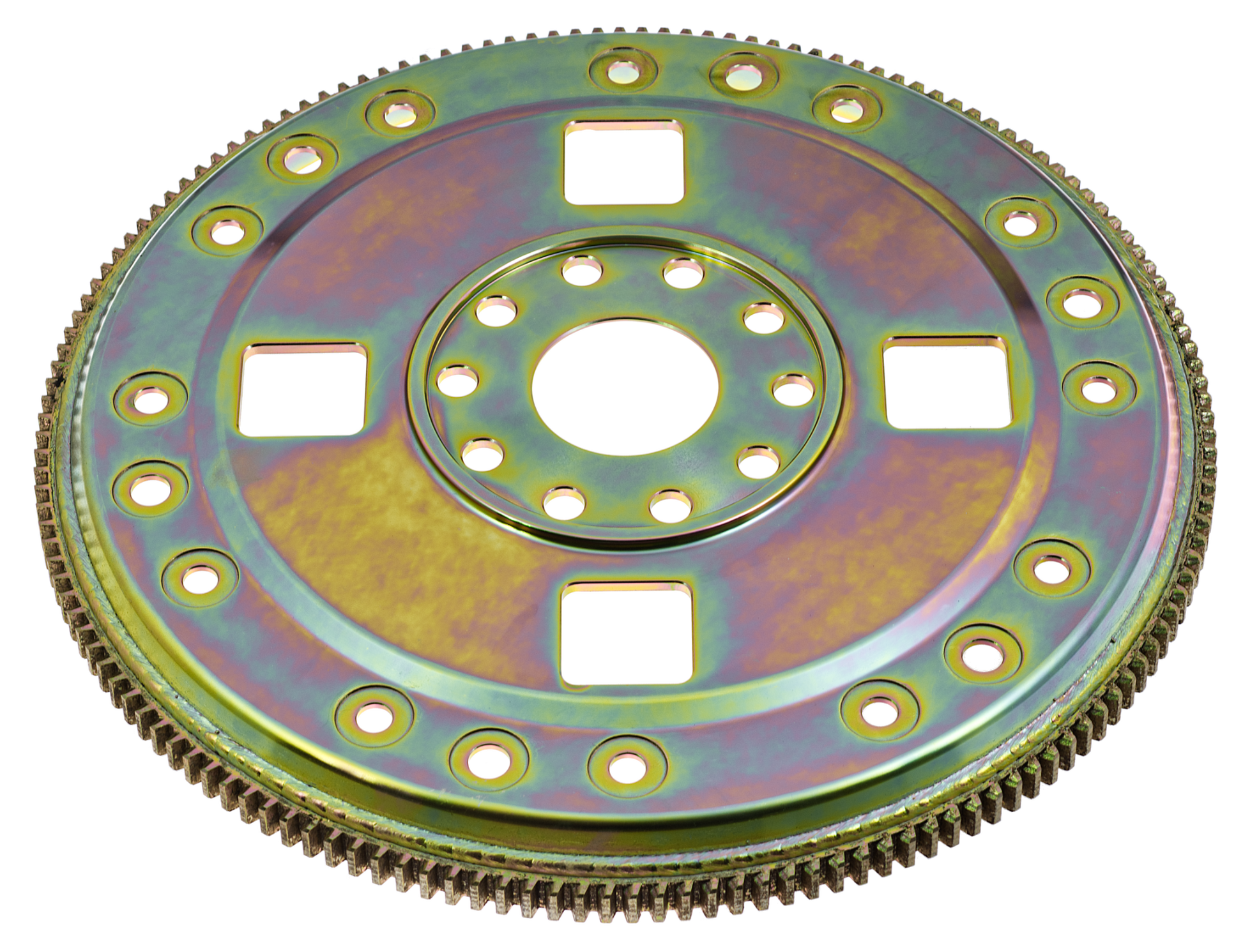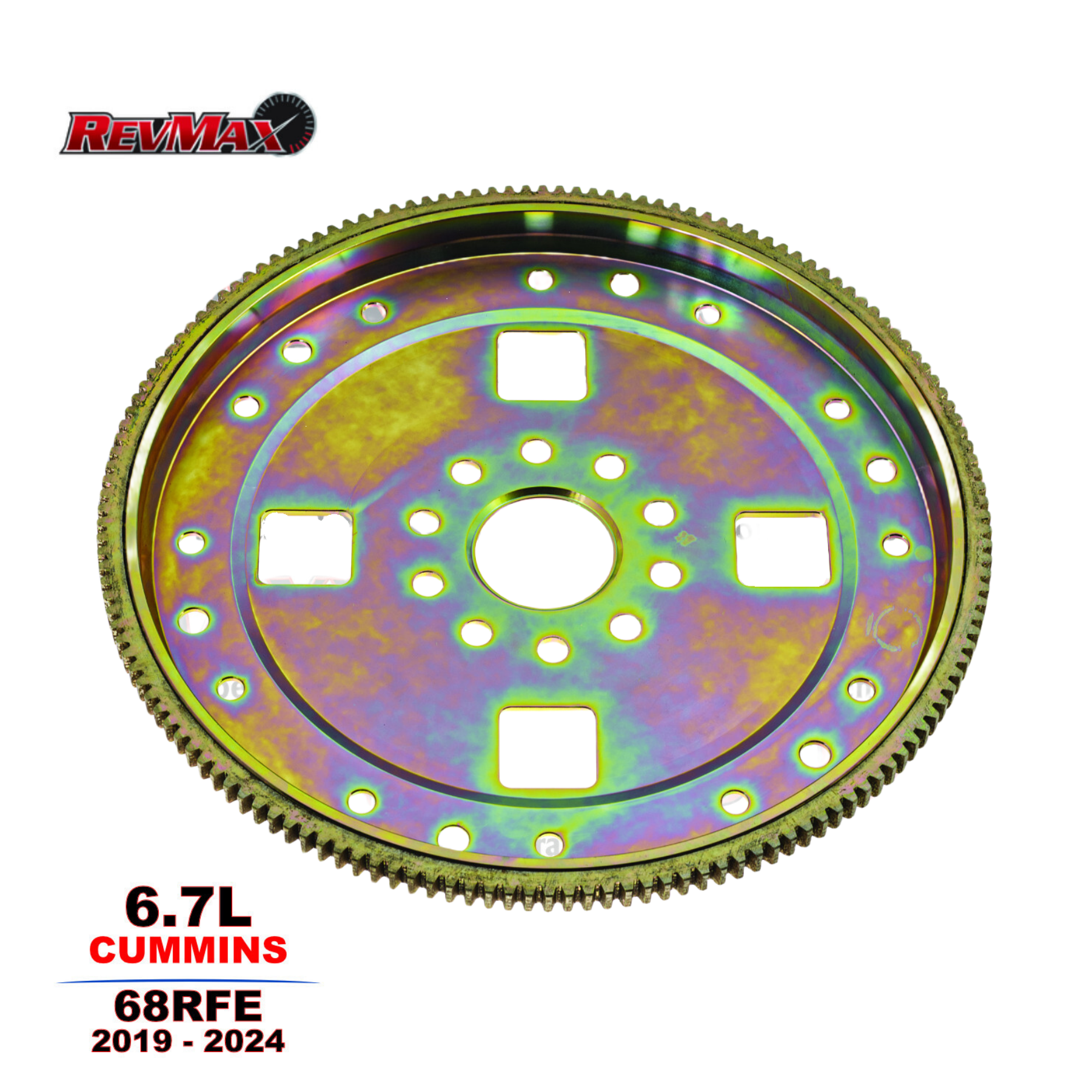RevMax billet steel flexplate — a must upgrade for any truck with the power turned up or for any stock truck pulling heavy loads. The factory plates often crack and eventually shear off, causing complete loss of power to the transmission.