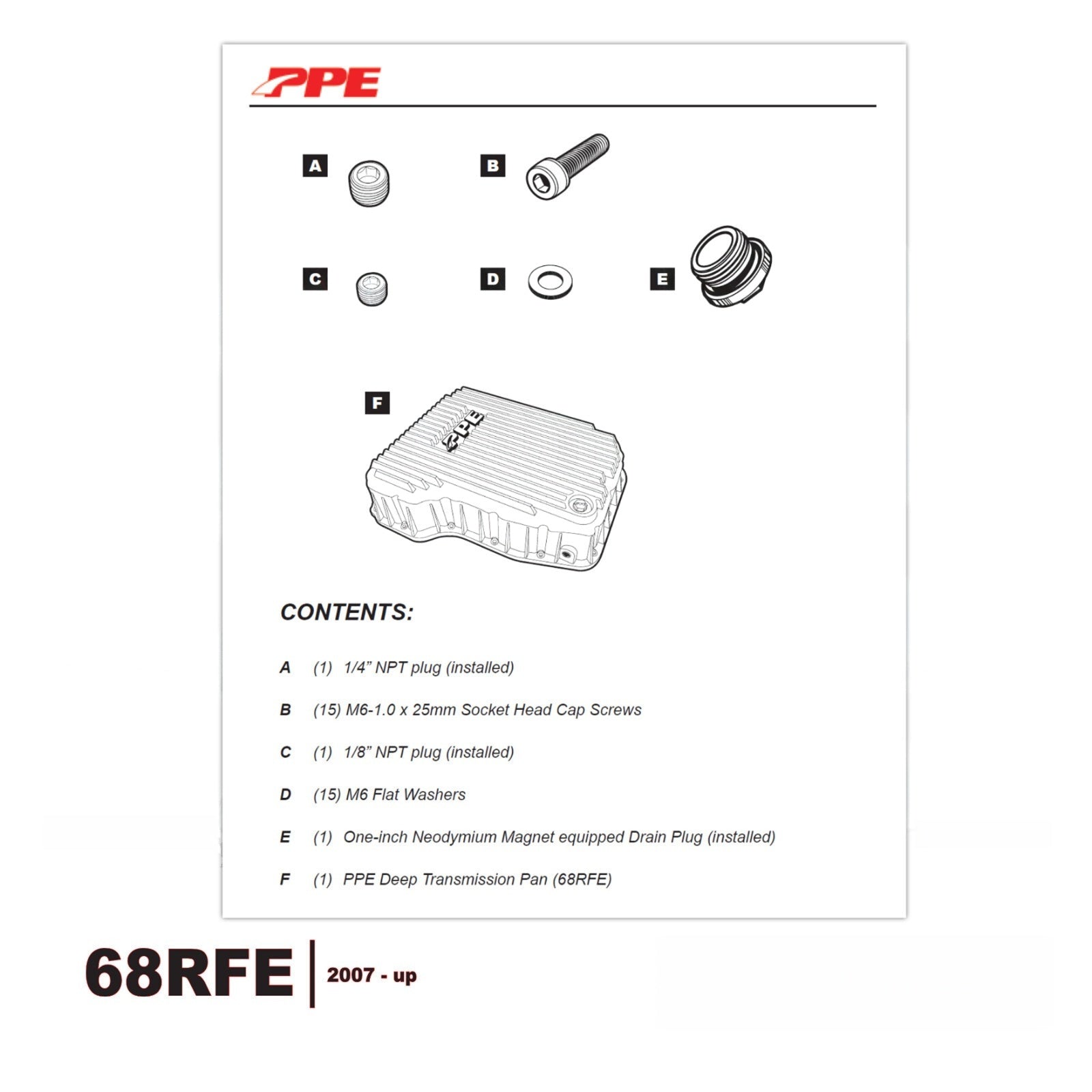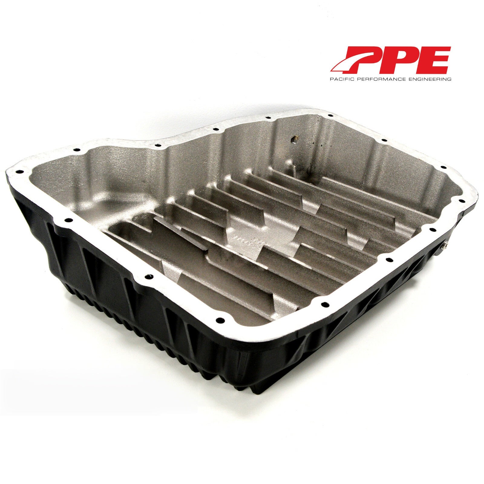 PPE’s transmission pan for the Ram 68RFE is made in the USA from high-quality cast aluminum. It features internal heat sinks and external cooling fins to reduce transmission oil temperatures.