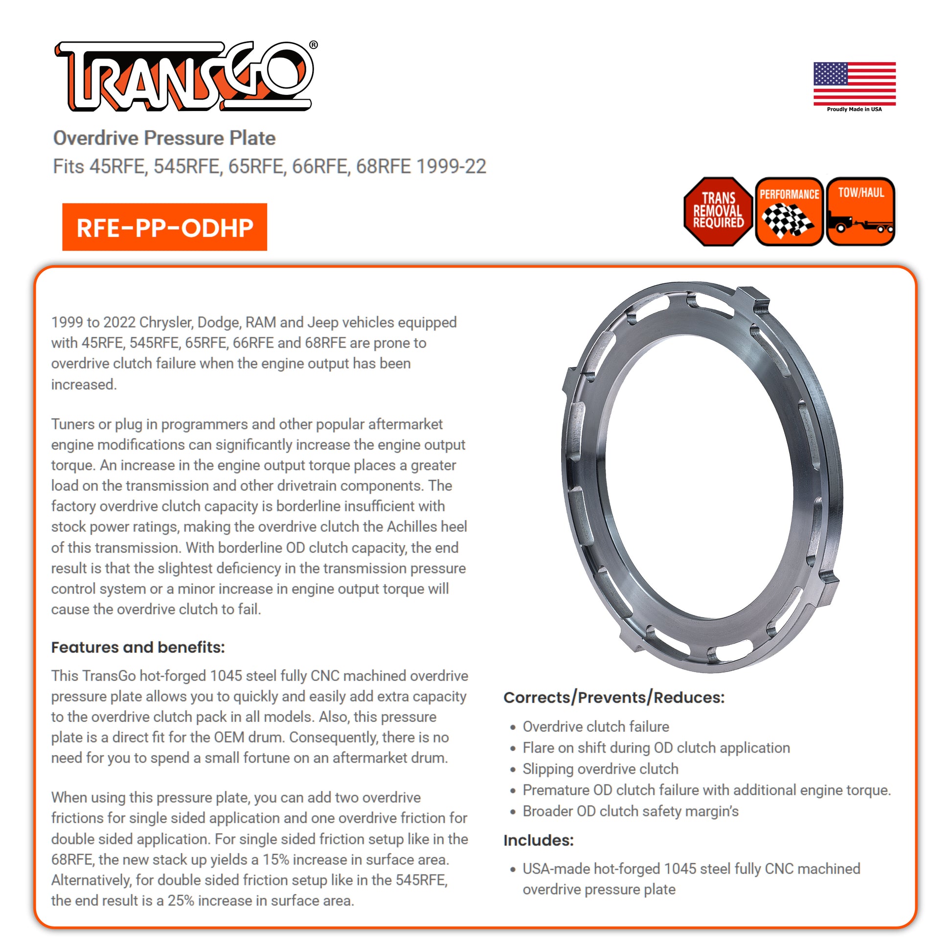 TransGo Overdrive Pressure Plate 545RFE 68RFE 1999-2022 RAM Jeep Dodge (RFE-PP-ODHP)